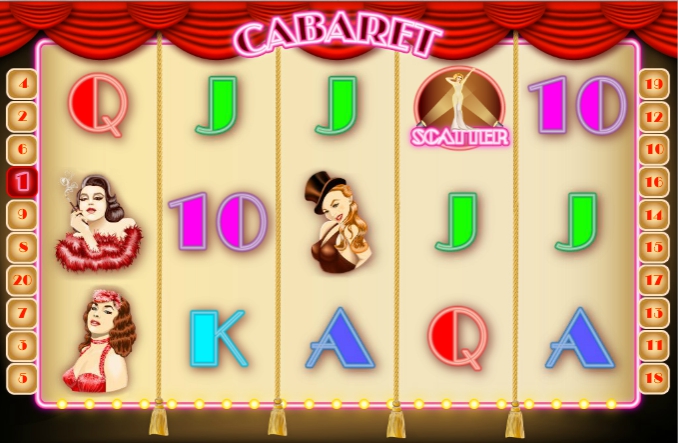 Слоты Cabaret, что следует из их названия, посвящены любимому развлечению прошлого века – кабаре, где на сцене выступали красивые женщины. Разработчик смог передать стилистику этих заведений, так как большинство символов представлены привлекательными актрисами в стильных нарядах 60-х годов.