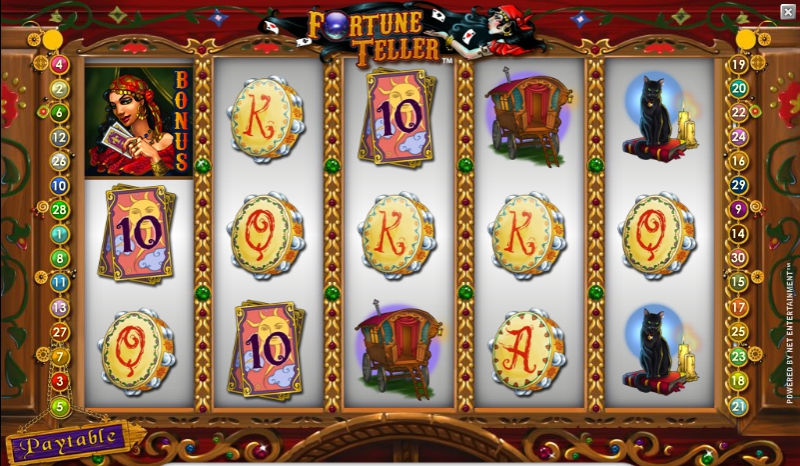Цыганская тематика нравится многим разработчикам, ведь именно этот народ показал особую искусность в предсказывании судьбы, ворожбе и прочей магии. Именно эта стилистика использовалась в слоте Fortune Teller, где предсказательница готова погадать на картах, показать будущее и отдать большие призовые игроку.